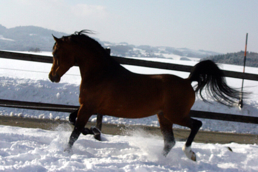 Seine Rapp-Tochter Heart of Fire ist sicherlich eine der schönsten Stuten unseres Gestüts - prämiert und leistungsgeprüft gegen Warmblüter mit einer 8,5 für Rittigkeit vom Fremdreiter.