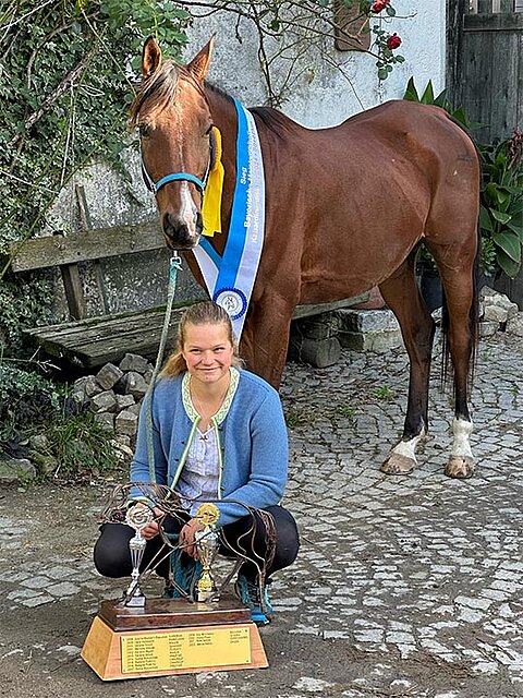 Hannah Gmeiner und ihr Achill AB werden Bayerische Meister im Distanzreiten und erhalten dazu noch die Best Condition von den Tierärzten für das fitteste Pferd.