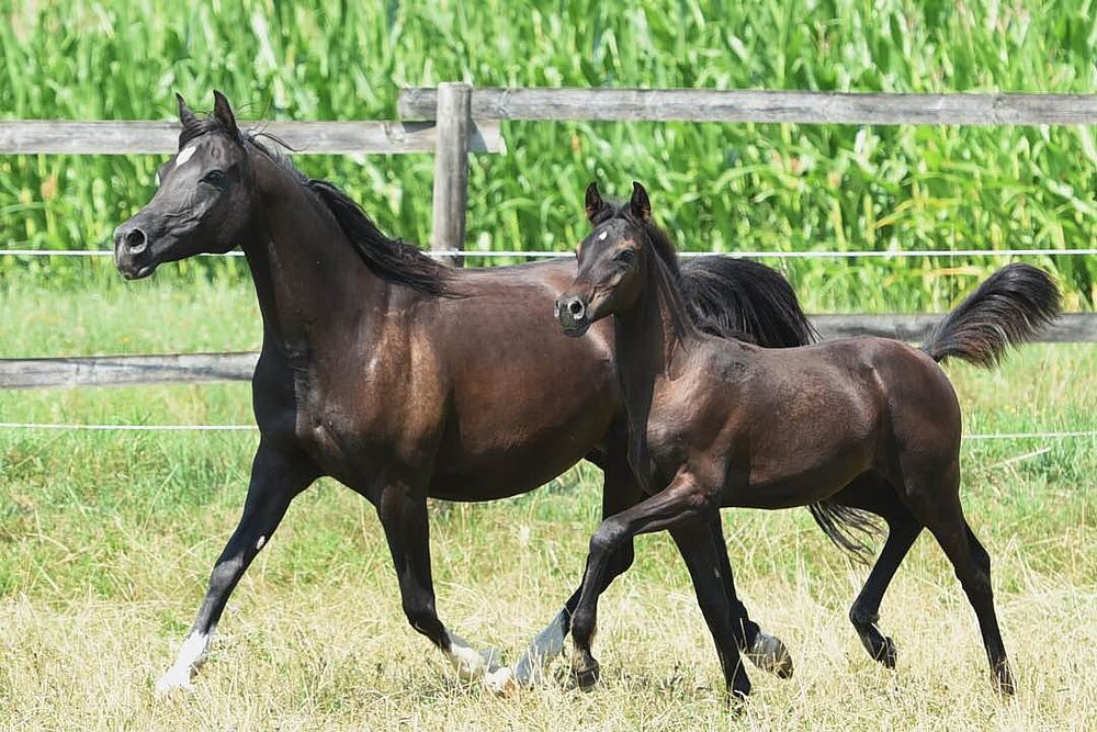 Heavens Midnight AB ist eine rahmige, äußerst bewegungsstarke Stute. Sie ist sehr typvoll, auf Leistung gezogen und ausgestattet mit souveränem Charakter. Ihre Mutter Heart of Fire AB ist leistungsgeprüft als einzige Vollblutaraber Stute unter lauter Warmblütern mit einem Fremdreitertest von 8,5! Heart of Fire AB ist Mutter unseres gekörten Sharaf Fareed AB von FM Shah Nasaa sowie vom Gold eingetragenen Simply The Best AB.