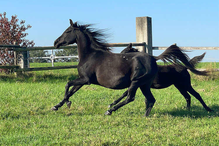 Ihre Mutter ist unsere leistungsgeprüfte, prämierte Hengstmutter Heart of Fire, deren Vater Aldaran ebenfalls leistungsgeprüft ist und Nachzucht bis 160 km erfolgreich im internationalen Distanzsport aufzuweisen hat.