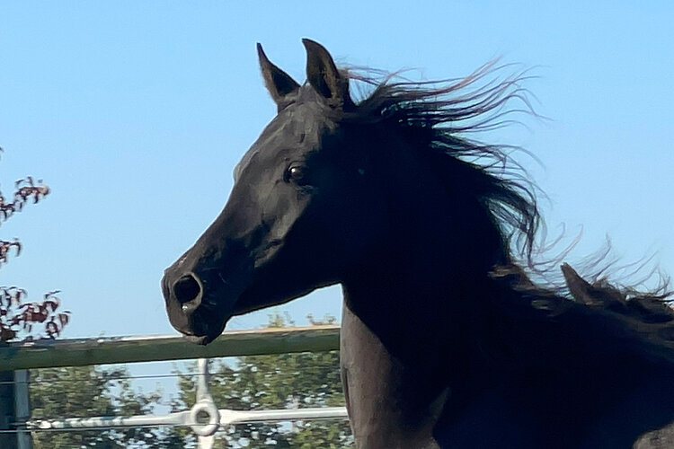 Heavens Starlight AB, homozygoth Rappe getestet, ist eine äußerst bewegungsstarke, sehr korrekte Jungstute die durch ihre schwebenden Gänge sofort ins Auge sticht. Sie ist momentan 2jährig mit einem Stockmaß von 1,49m und sehr rahmig mit sehr korrektem Fundament. Sie wächst bei uns extensiv im Offenstall auf, sodaß ihre Entwicklung noch lange nicht abgeschlossen ist. Ihr unglaublich menschenbezogener Charakter macht sie zu einem Schatz, sie lässt die Menschen nicht aus den Augen und folgt auf Schritt und Tritt .
