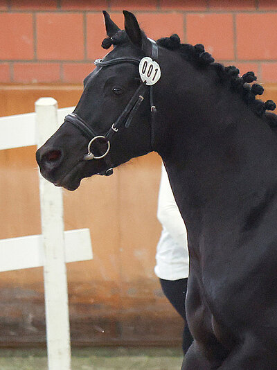 Silas AB ist ein großrahmiger, gut bemuskelter Bub mit riesigem Aufsatz aus der Prämienstute Esme AB von Sharaf Fareed AB und dem gekörten, prämierten und leistungsgeprüften Vater Simply The Best AB.