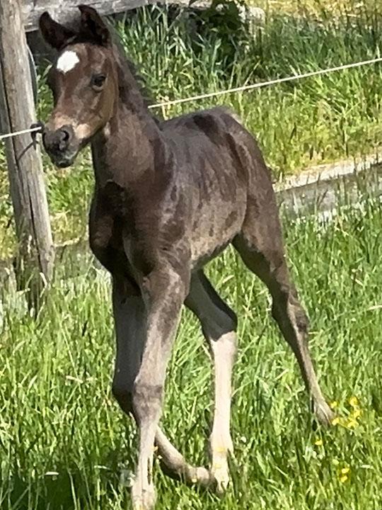 Simply A Surprise AB ist ein sehr großrahmiges Rapphengstfohlen mit hervorragender Bewegungsqualität.