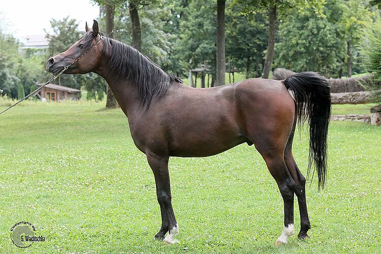 Dabei sind seine besonders guten Regenerationswerte aufgefallen. Dies ist kein Zufall, entspringen der Mutterlinie doch WM Teilnehmer im Distanzsport wie z. B. Anuar AB.